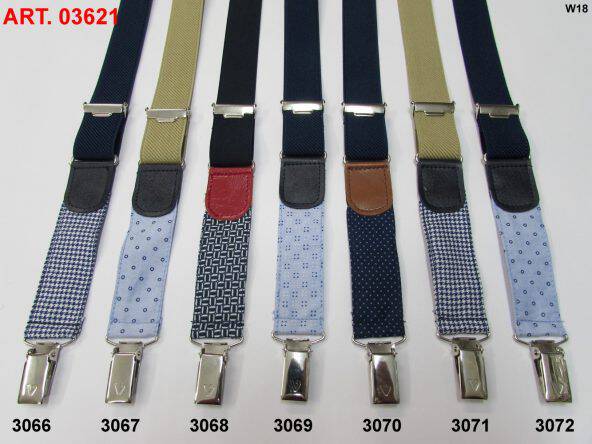 Code: 03621. Children’s Suspenders with 3 clips in two sizes, for ages 1-5 and 5-10 years old. Combining the monochrome elastic with the fabric ending of your choice.